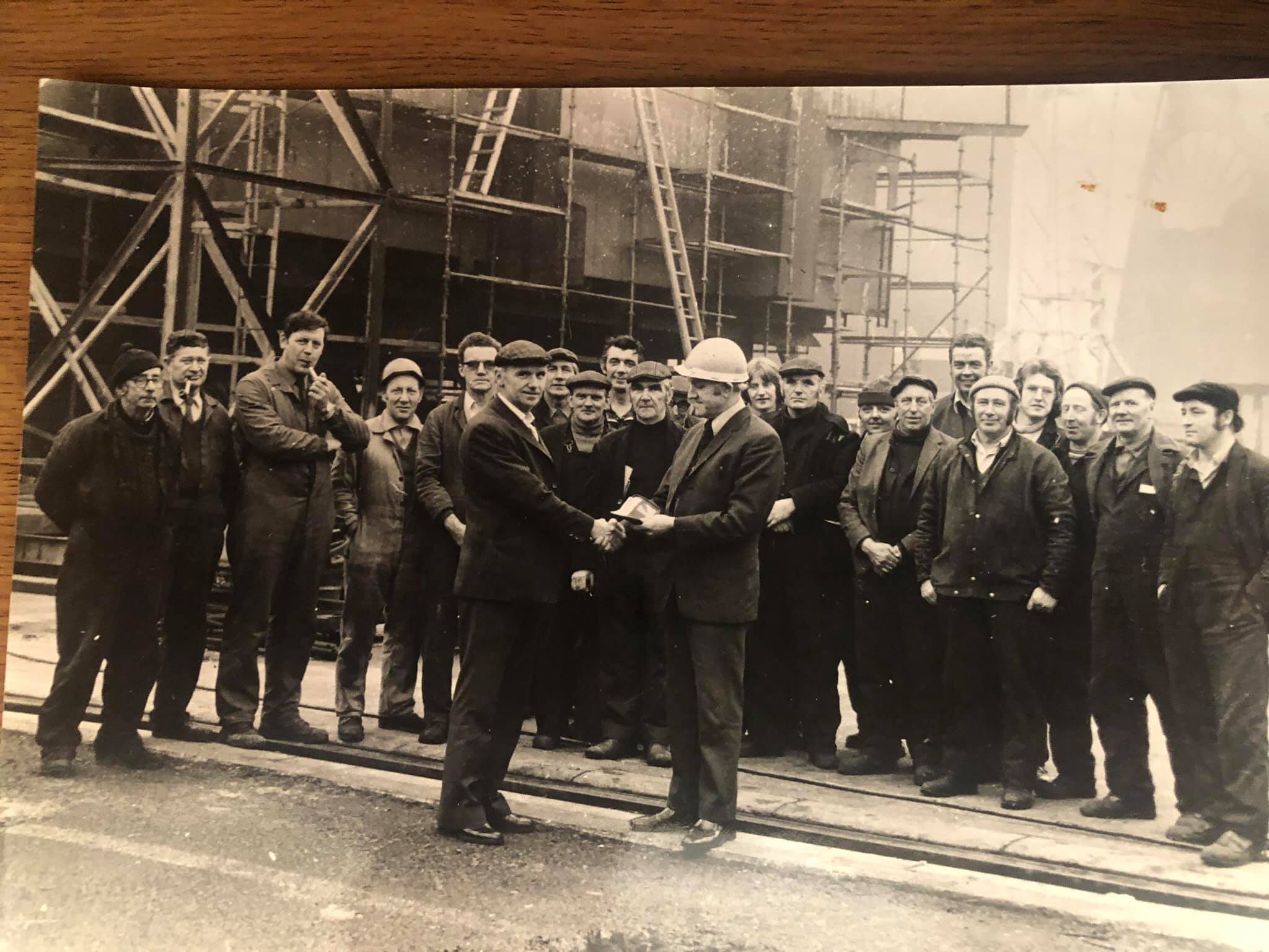 The largest oil rig launched in in the UK. The first structure of this nature and size in the world to enter the water in one peice. Built for BP at a cost of 3.5 million pounds and launched on 8 January 1966. The entire structure was 320 feet (98 m) high and weighed 150,000 tons, including three legs each 35 feet (11 m) in diameter and 160 feet (49 m) long. Owing to its great size the rig occupied three slips of the Musgrave yard.